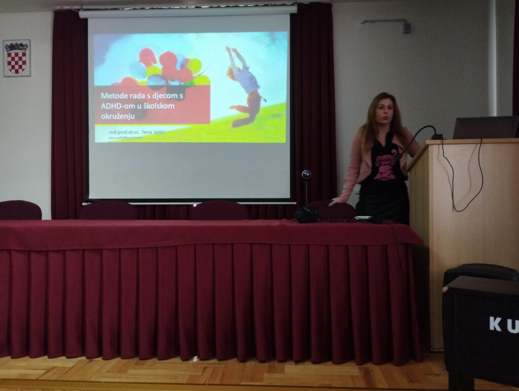 U svojem je izlaganju prof. dr. sc. Tena Velki govorila o suvremenim spoznajama povezanima s teškoćama pažnje, impulzivnosti i hiperaktivnosti kod djece te je predstavila konkretne i primjenjive metode rada u školskom okruženju. Poseban naglasak stavljen je na važnost pravodobnog prepoznavanja teškoća, individualiziranog pristupa učenicima te primjenu strategija poput pozitivnog potkrepljenja, funkcionalne analize ponašanja, žetoniranja i razvoja socijalnih i emocionalnih vještina.