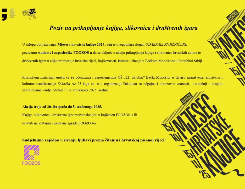 Poziv na prikupljanje knjiga, slikovnica i društvenih igara u okviru Mjeseca hrvatske knjige 2025.