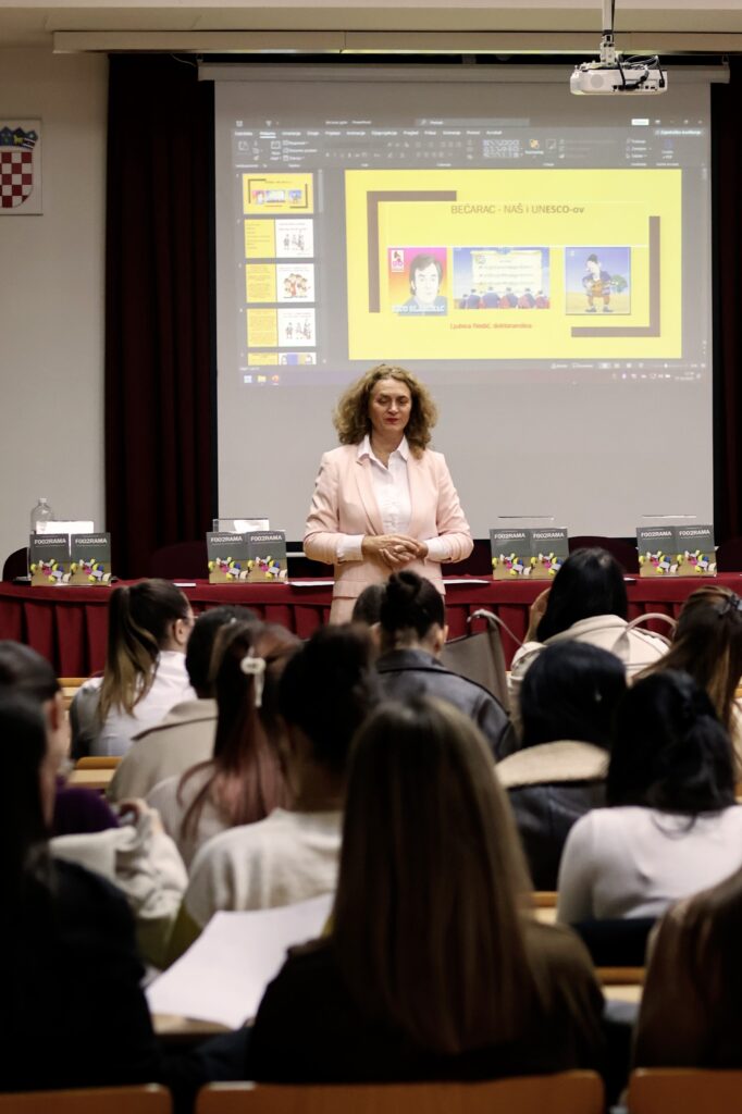 Druga aktivnost bilo je predavanje i kreativna radionica naziva Bećarac – naš i UNESCO-ov. Voditeljica aktivnosti bila je Ljubica Nedić, doktorandica doktorskoga studija Obrazovne znanosti i perspektive obrazovanja. Zahvaljujemo dr. sc. Gordani Lesinger, izv. prof., i studenticama 1. godine sveučilišnoga prijediplomskog studija Edukacijska rehabilitacija na sudjelovanju te što su podržali rad Udruge.